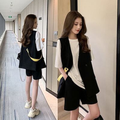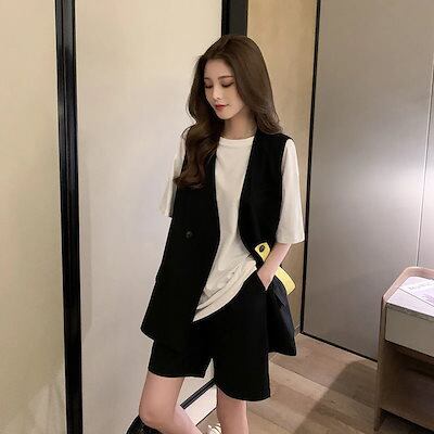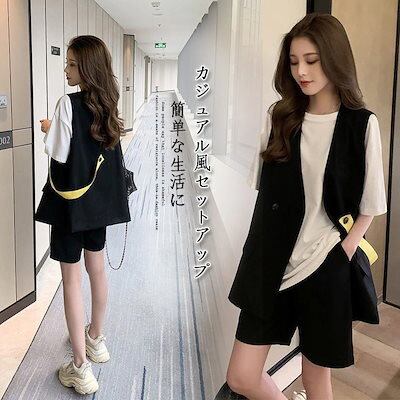 三点セット大きいサイズ 流行り おしゃれ ベスト 新作 ゆったり カジュアル セットアップ涼しく楽ちんセットアップ ワイドパンツ 気質 Tシャツセット レディース 日焼け止め 2024