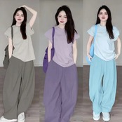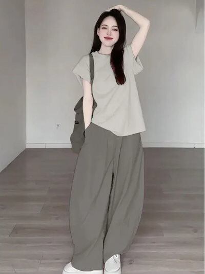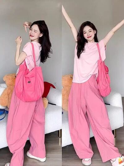 二点セット 百掛け Tシャツセット ワイドパンツ カジュアル レディース 新作 おしゃれ 大きめサイズ スウエットセットアップ 気質 2024 セットアップ涼しく楽ちんセットアップ