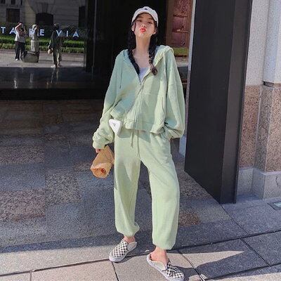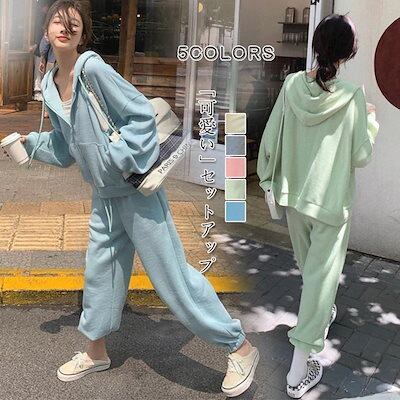 【2枚購入で パーカー 大きいサイズ 上下セット レディース 運動 2oo円OFF!】2024新作 着痩せ カジュアル スウェット上下セット セットアップ 二点セット ワイドパンツ