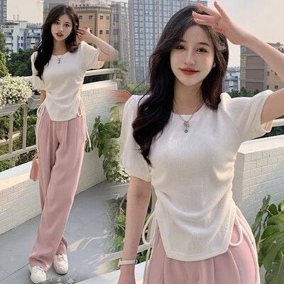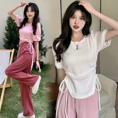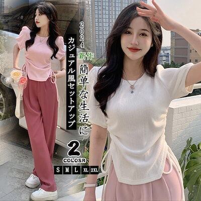 レディース Tシャツ カジュアル セットアップ涼しく楽ちんセットアップ シンプル 二点セット 気質 2024 大きめサイズ 日焼け止め 可愛い ワイドパンツ セット 新作