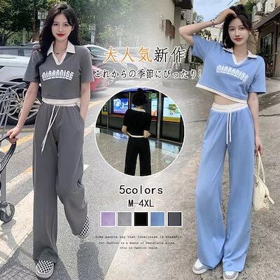セット レディース 2024 セットアップ涼しく楽ちんセットアップ 大きめサイズ シンプル カジュアル 新作 日焼け止め 可愛い Tシャツ 二点セット ワイドパンツ