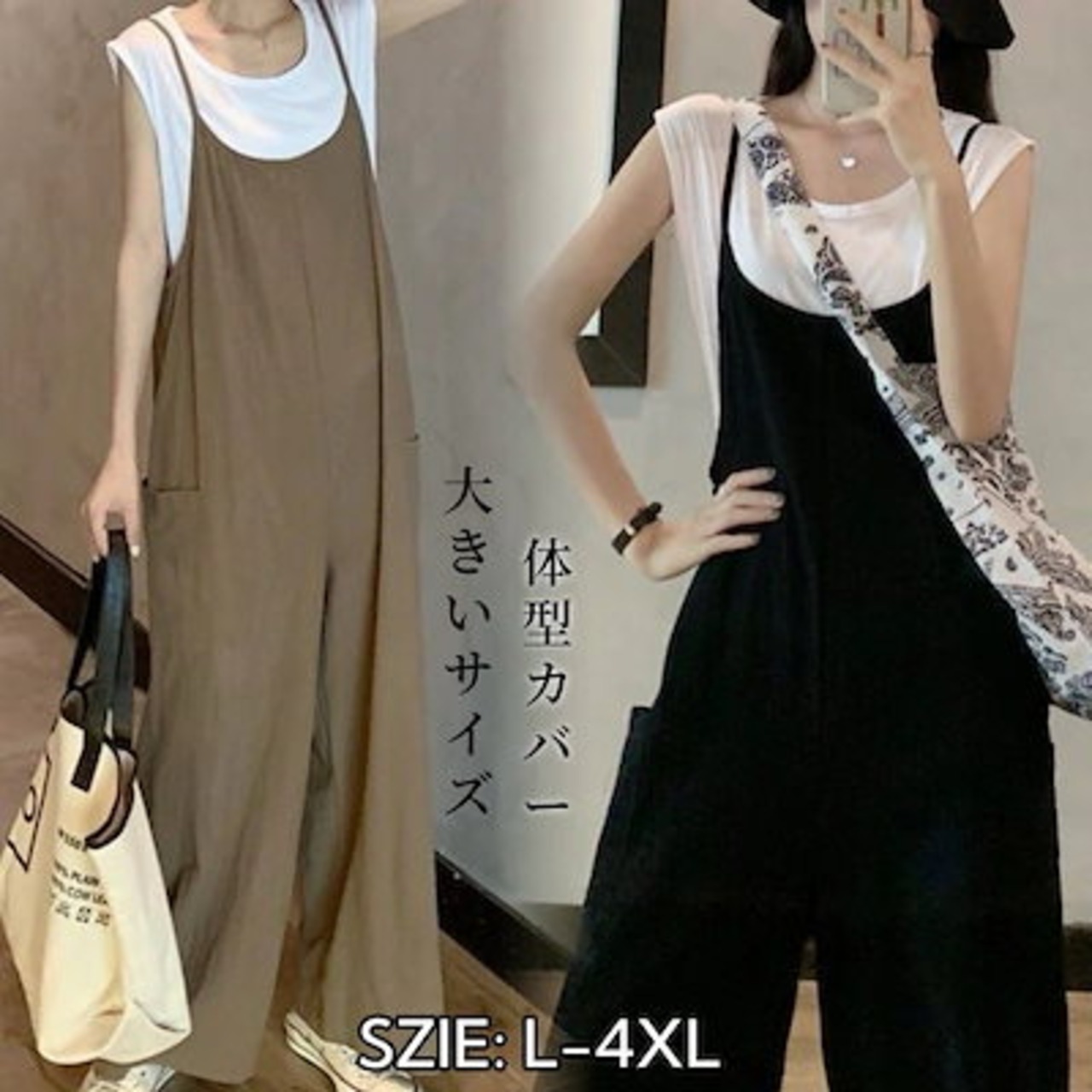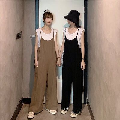 【2枚購入で 2oo円OFF!】コーデ完成!サロペット 【細く見える】大きいサイズ サロベットバンツ 韓国ファッション 春夏オールインワン レディース ゆったり 体型カバー ワイドパンツ着痩せ ロング