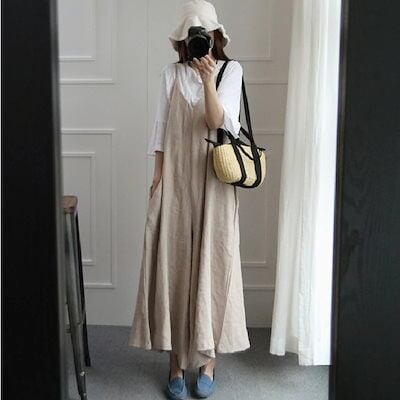 【2枚購入で 2oo円OFF!】コーデ完成!サロペット サロペット 夏 韓国ファッション オーバーオール 大きいサイズリネンパンツ 体型カバー 薄手ゆったり ワイドパンツ レディース/キュロットスカー