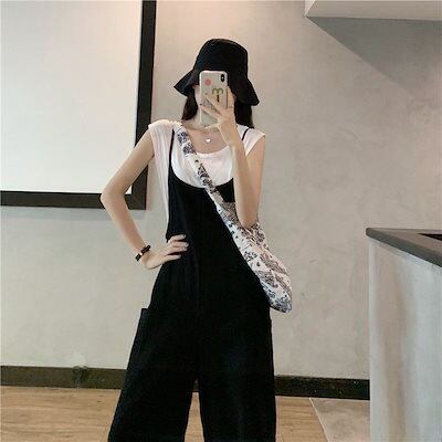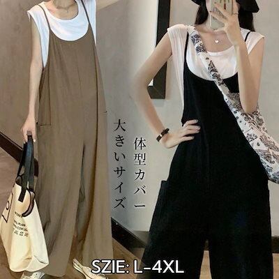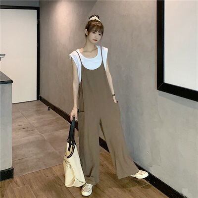 サロペット サロペット 【細く見える】大きいサイズ サロベットバンツ 韓国ファッション 春夏オールインワン レディース ゆったり 体型カバー ワイドパンツ着痩せ ロングパンツ ノースリーブ$$母の日