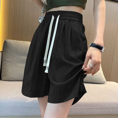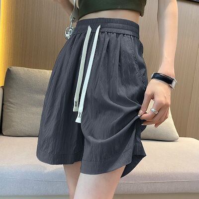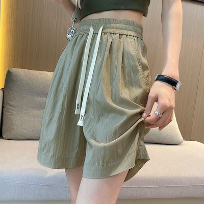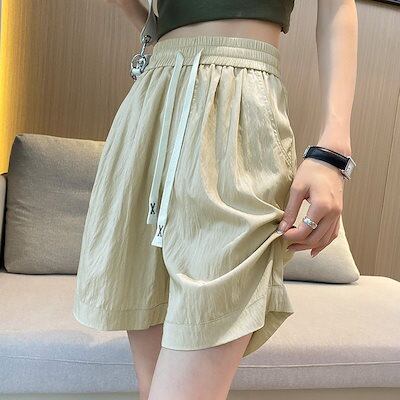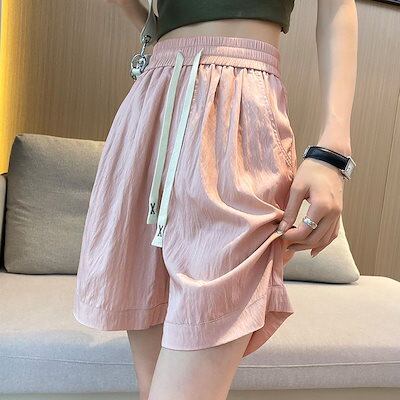 2024新作 ワイドパンツ ト レディース ガウチョパンツ ロングパンツ ズボン 春夏 ウエストゴム ゆったり 無地 リブ ハイウエスト 大きいサイズ カジュアル 伸縮性 快適 接触冷感 サラサラ 0