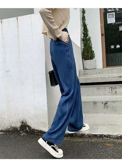 デニム パンツ レディース ワイドパンツ ズボン ロングパンツ デニムパンツ ボトムス ジーンズ ガウチョ きれいめ 体型カバー ウエストゴム お洒落 大きいサイズ 着痩せ 美脚 通勤 通学 ゆったり