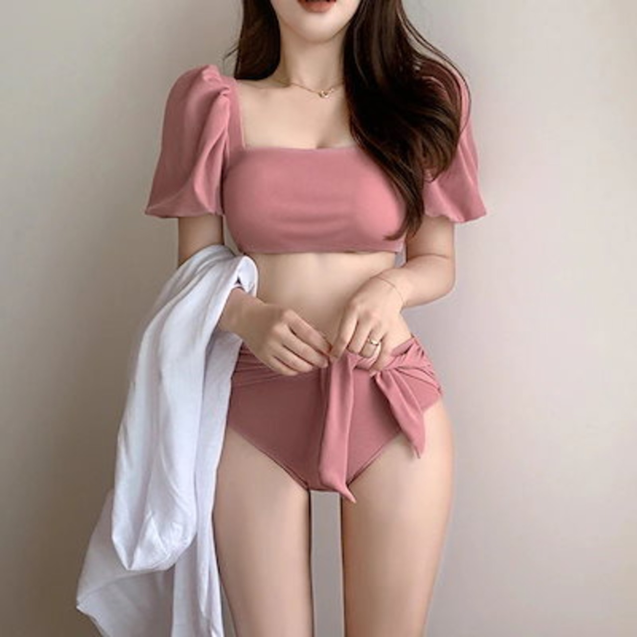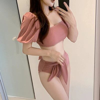 水着 セパレート水着 スリム見え バブル袖 小胸ギャザリング 温泉 レジャー s レディース