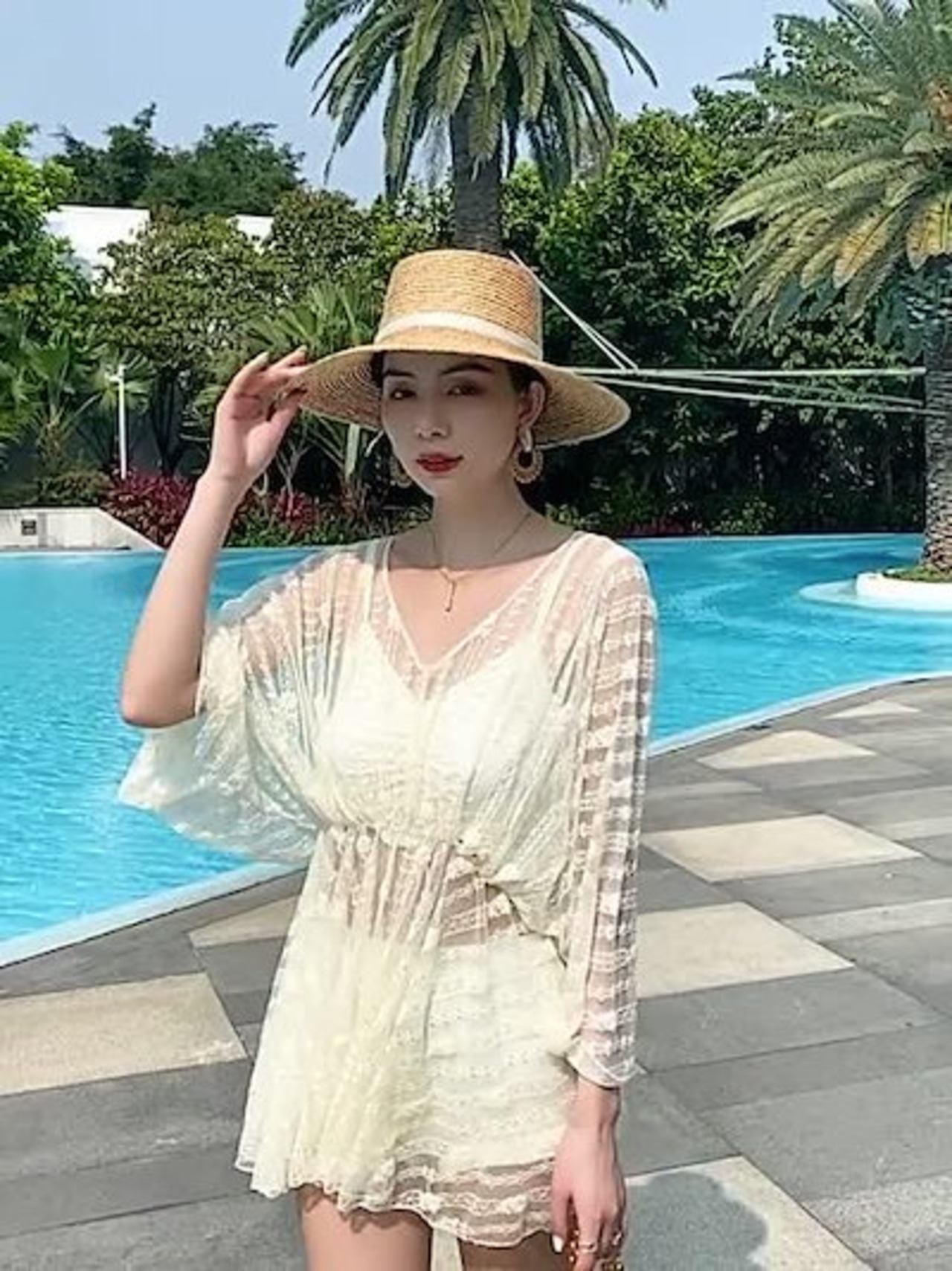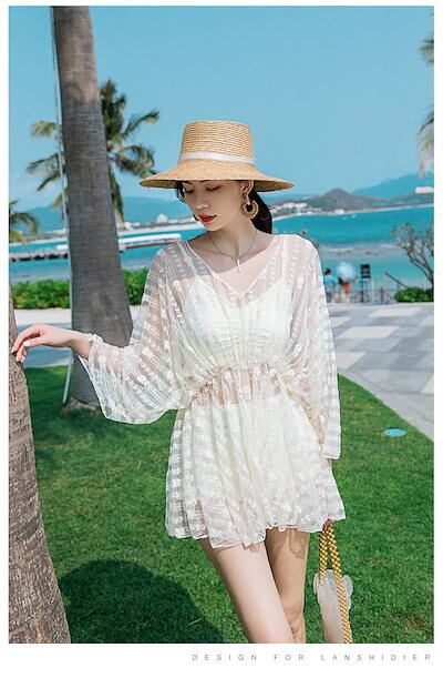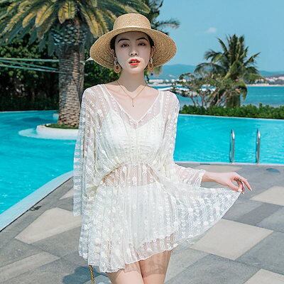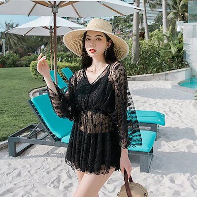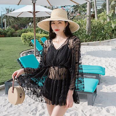 水着 レディース 体型カバー 3点セット カーディガン セクシー パット付き レース お