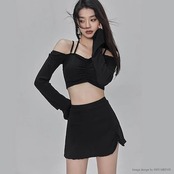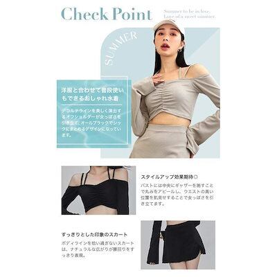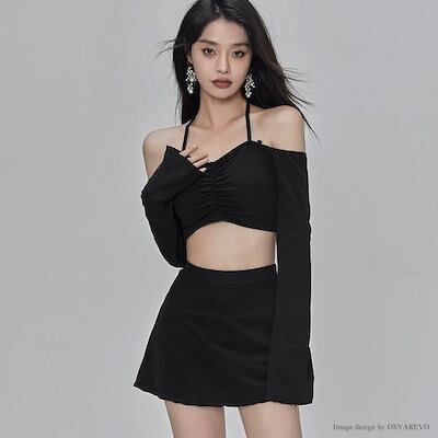 限定セール!水着 夏 レディース セパレート 体型カバー ビキニ タンキニ 長袖 オフショル水着 夏 スカパン スカート ブラック 黒 グレー 高校生 20代 30代