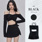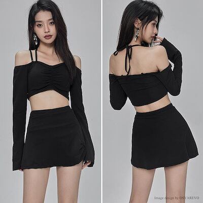 限定セール!水着 レディース セパレート 体型カバー ビキニ タンキニ 長袖 オフショル水着 スカパン スカート ブラック 黒 グレー 高校生 20代 30代