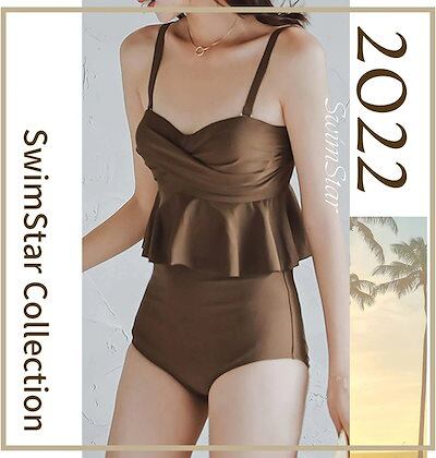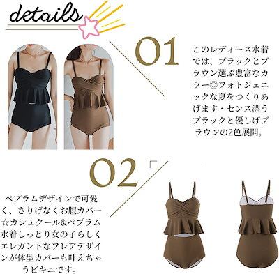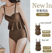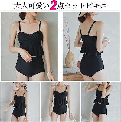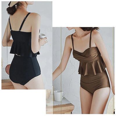 水着 ビキニ レディース 2点セット キャミソール スイムドレス ペプラム水着 フリル水着 体型カバー 女性水着 かわいい スイムウェア ビーチウェア 水泳用 韓国水着 温泉水着 海水浴 水陸両用