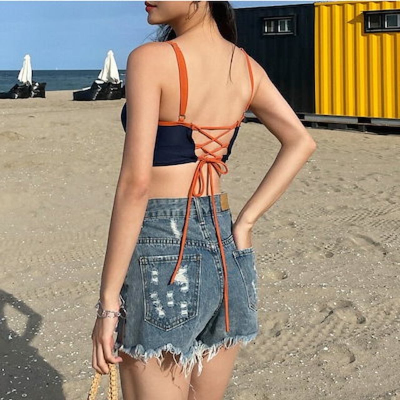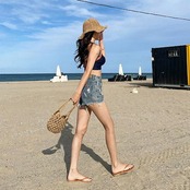 韓国系 配色 ハイウエスト ス 体型カバー ビーチ レディース M L XL タンキニ 水着