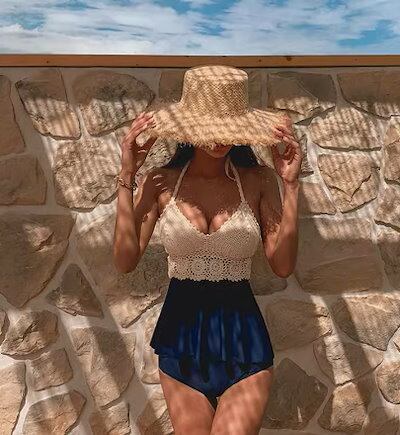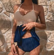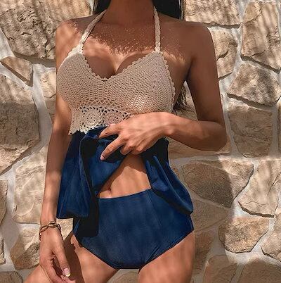 水着 スイムウェア レディース タンキニ モノキニ 紐 体型カバー パッド付き レース レースアップ 伸縮性 セット 上下セット かわいい 大人可愛い シンプル カジュアル ナチュラル おしゃれ
