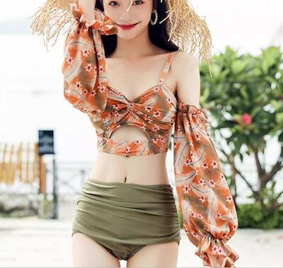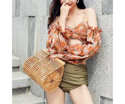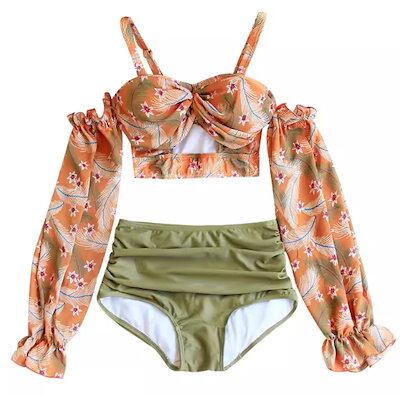 水着 レディース タンキニ セパレート 長袖 フリル セット ツーピース 上下セット かわいい 大人可愛い カジュアル 華やか 大人っぽい おしゃれ お洒落 ラブリー キュート ガーリー 個性的