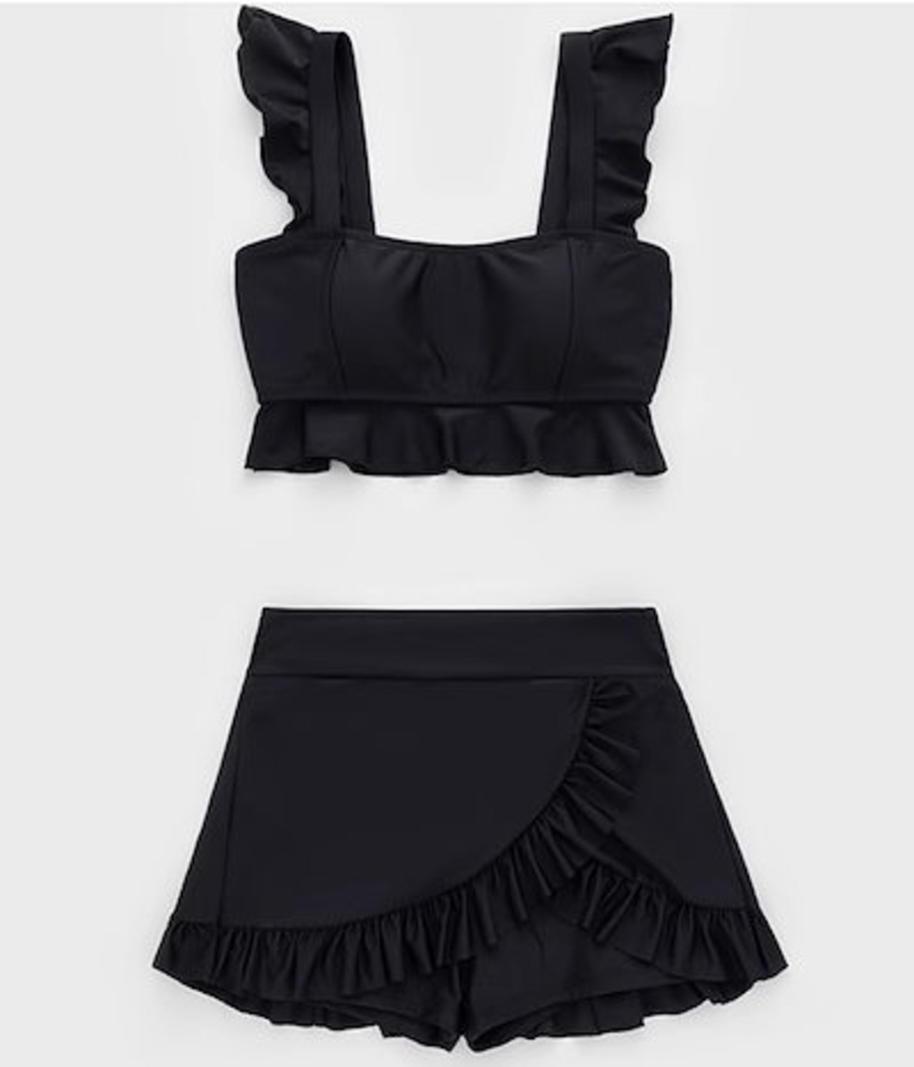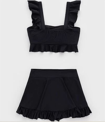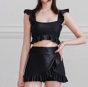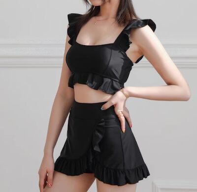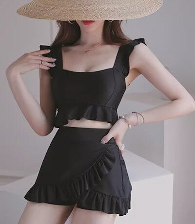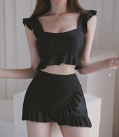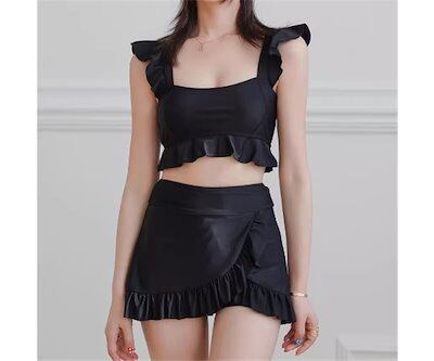 水着 ビキニ レディース タンキニ 体型カバー スカートスタイル セパレート ノンワイヤー パッド付き スクエアネック フリル セット ツーピース 上下セット かわいい 大人可愛い きれいめ シンプル