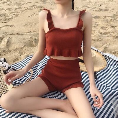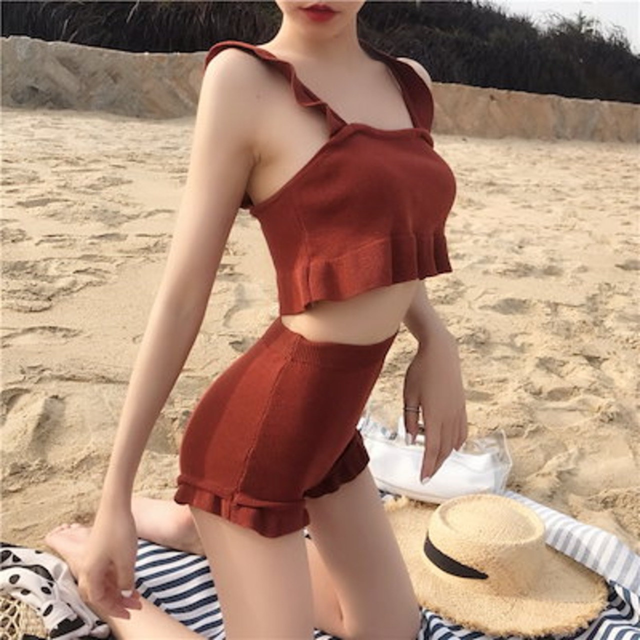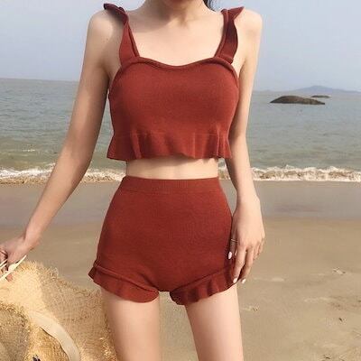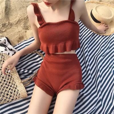 ビキニ レディース 水着 スイムウェア タンキニ セクシービキニ セパレート パッド付き フリル ハイウエスト 伸縮性 胸元 谷間 谷間魅せ 盛れる かわいい 大人可愛い きれいめ セクシー