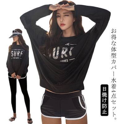ラッシュガード レディース 水着 4点セット 水陸両用 日焼け防止 体型カバー 水着 上下セット 長袖 プルオーバー ラッシュガード UPF50 スポーツブラ ショートパンツ レギンス フィットネス水