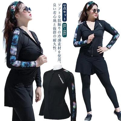水着 体型カバー フィットネス レディース ラッシュガード 長袖 5点 上下セット フィットネス水着 セパレート タンキニ かわいい 大きいサイズタンキニ ショートパンツ レギンス 花柄 ママ水着 2