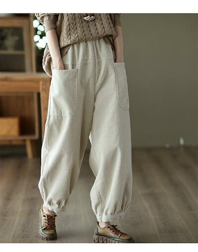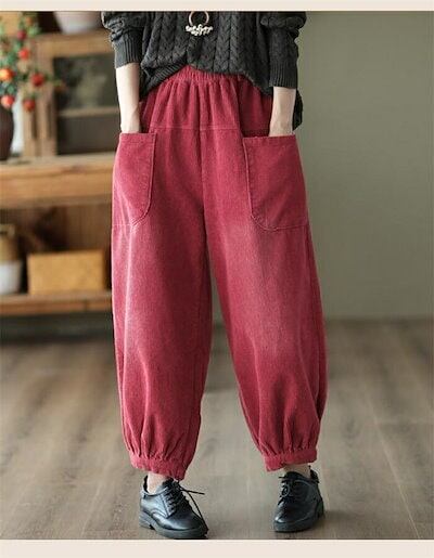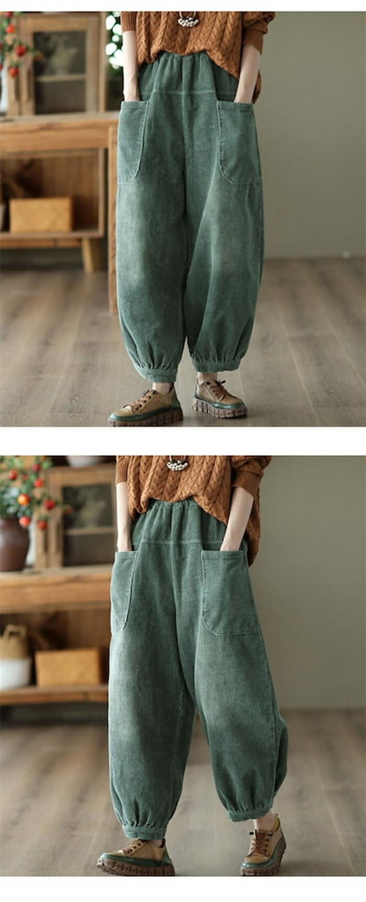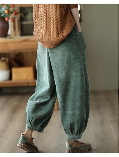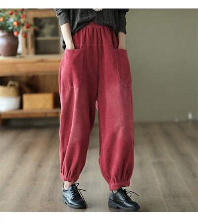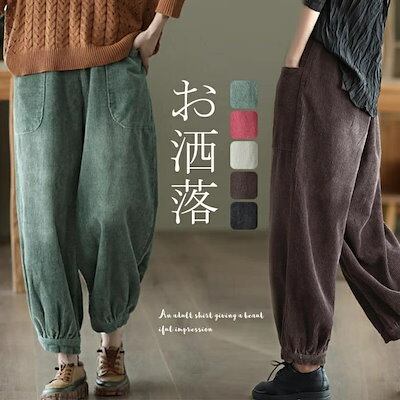 バルーンパンツ レディース コーデュロイ 秋冬 ロングパンツ ワイドパンツ 冬 ワイド ムス パンツ 長ズボン 大きいサイズ ゆったり ウエストゴム ガウチョパンツ ロングパンツ サルエルパンツ