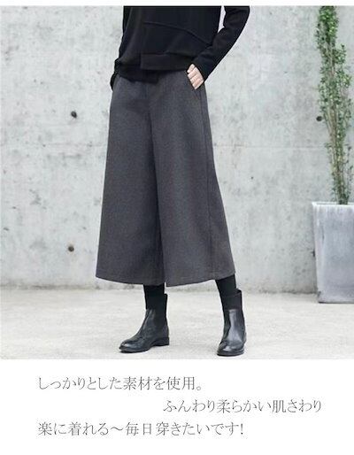 ワイドパンツ ウール調 レディース 冬 ゴム ゆったり パンツ ロングパンツ 秋冬 ガウチョパンツ ロング丈 大きいサイズ 九分丈 ガウチョ 九分丈パンツ 長ズボン ひざ下
