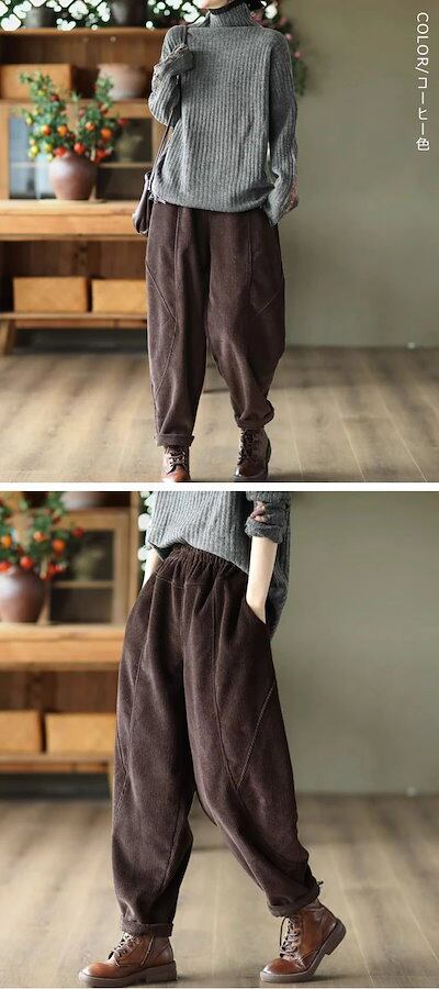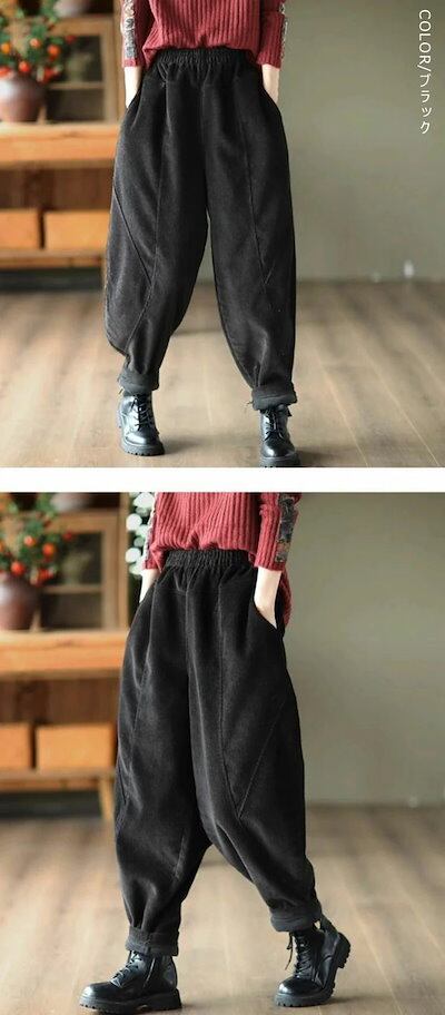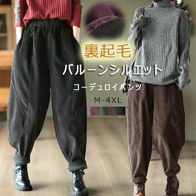 パンツ 裏起毛 レディース バルーンパンツ 秋冬 あったか コクーンパンツ コーデュロイ パンツ ムス 裏起毛パンツ ワイドパンツ 大きいサイズ コーデュロイパンツ ワイド 体型カバー サーカスパ