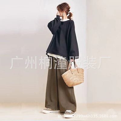 【日系人気商品!】【急速出荷】2025秋冬新品 大きめサイズ レディース セットアップ長袖トップス +ゆったり カジュア ルワイドパンツ 体型カバー 二点セット メガ割 2025福袋