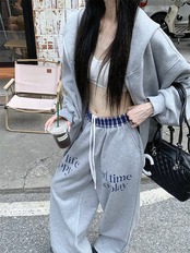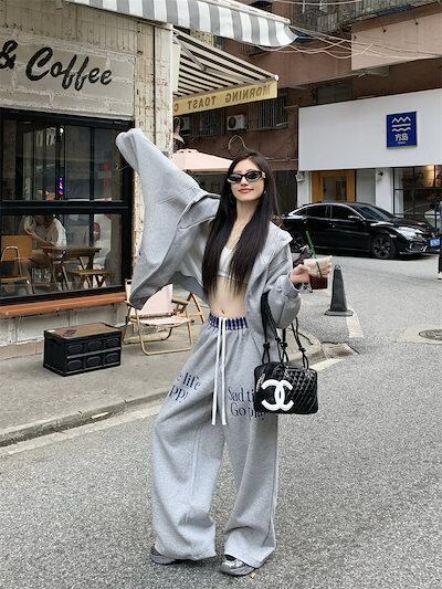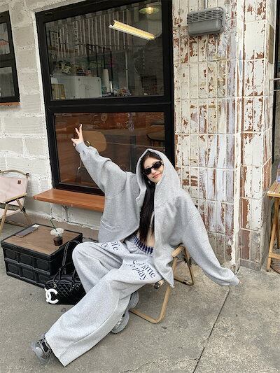 2024 春秋 2点セット トップス お出かけ 羽織り ショート丈 セットアップ フルラウンドヘム ルーズ サイド ボトムス ストレート系冬 ゆったり サイズワイドシルエット リラックストラック