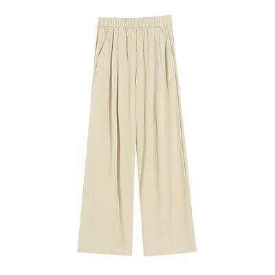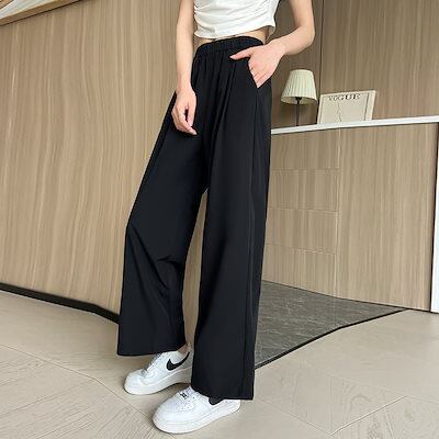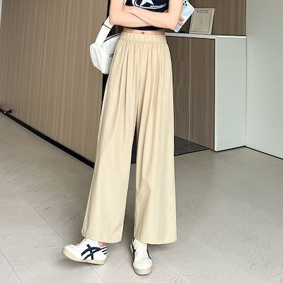 接触冷感ボトムス スラックスパンツ 万能カジュアル 大きいサイズ ゆったり 速乾 ストレート パンツ レディース 夏 ファッション 伸縮性 ウエストゴム 9点ワイドパンツ 韓国ファッション