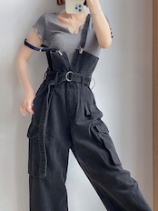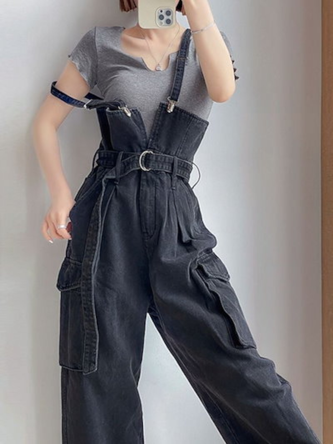 サロペット 新作 デニム サロペット レディー ワイドパンツ デザイン感 オーバーオール 大きいサイズ オールインワン