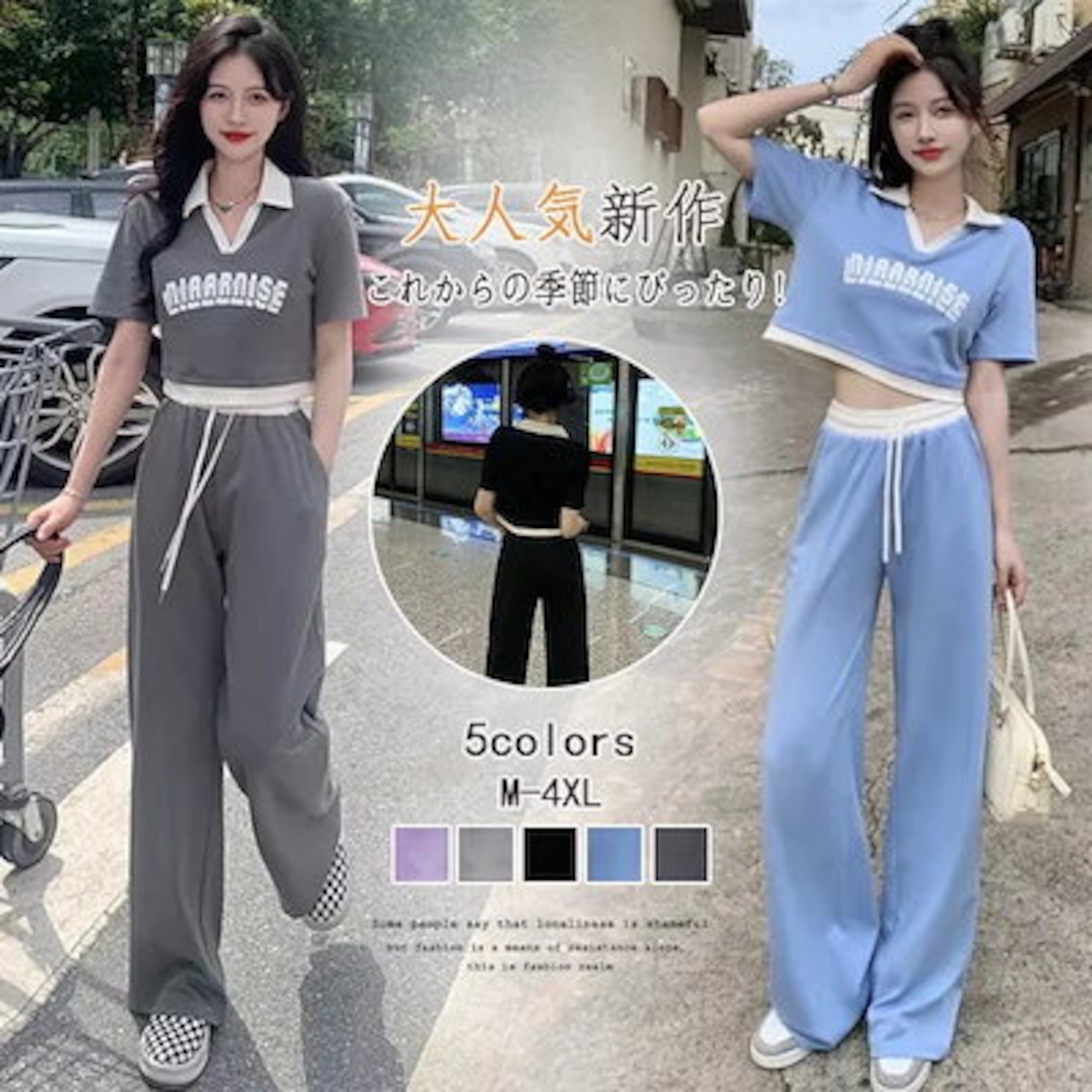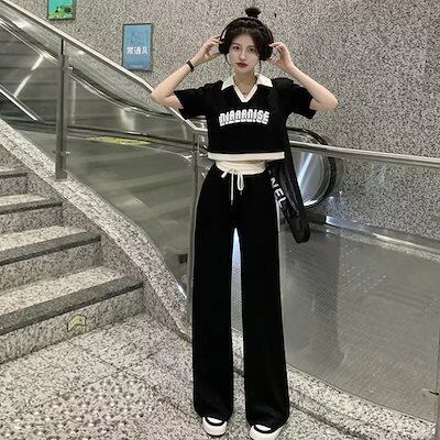 2025 新作 可愛い 二点セット シンプル ワイドパンツ Tシャツ セット カジュアル 涼しく楽ちんセットアップ レディース 大きめサイズ 日焼け止め
