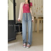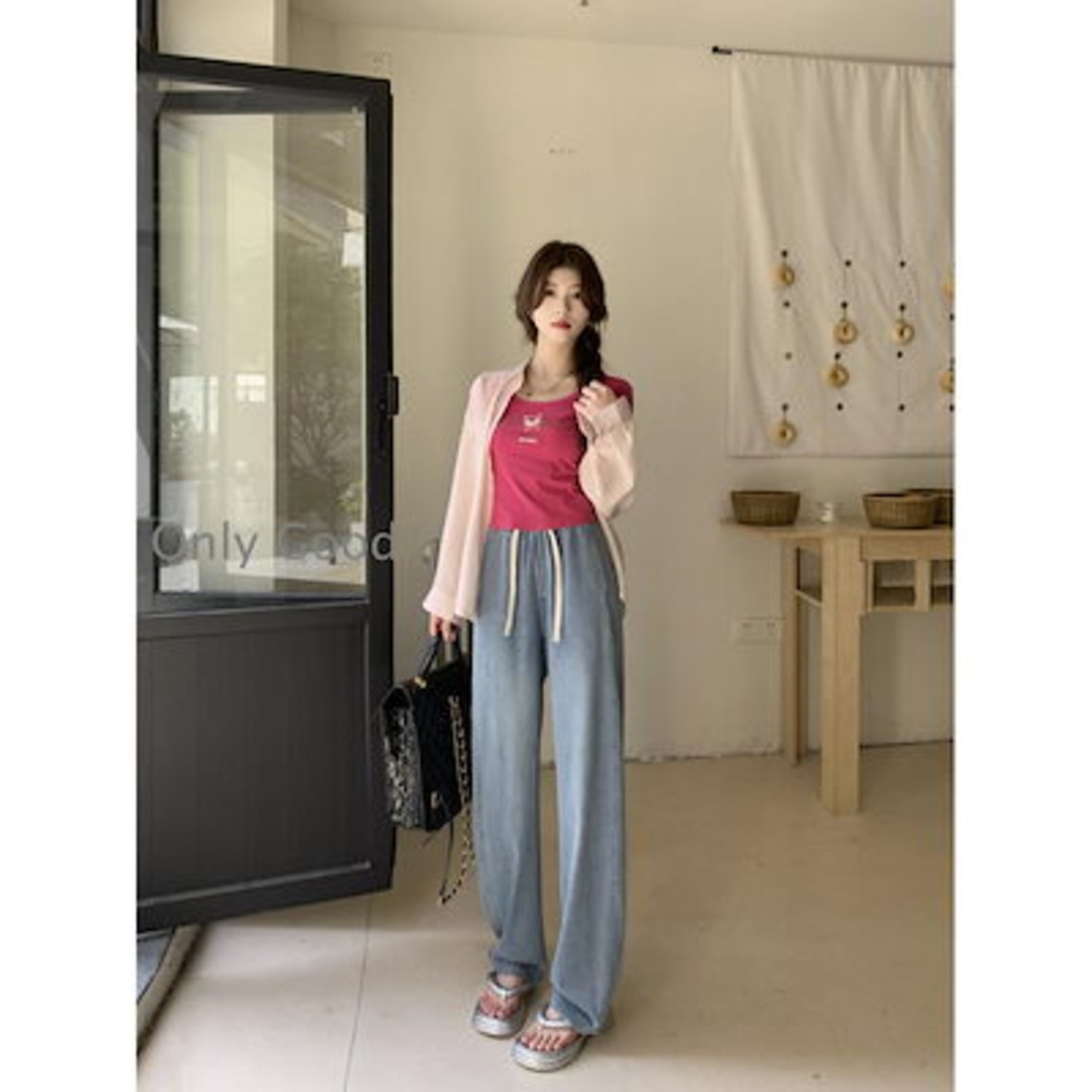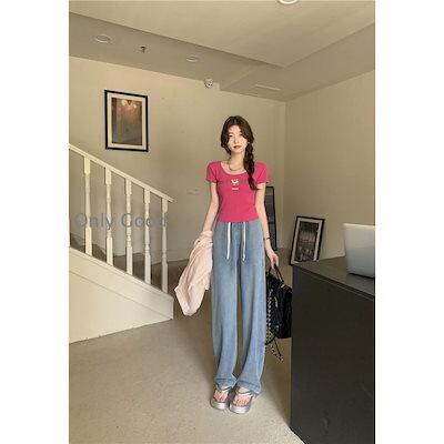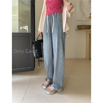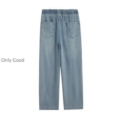 パンツ レディース デニムパンツ ワイド ウエストゴム デニム 春 夏 無地 ロング丈 ストレートパンツ ジーンズ 薄手 涼しい ひんやり ゆるパンツ ガウチョ