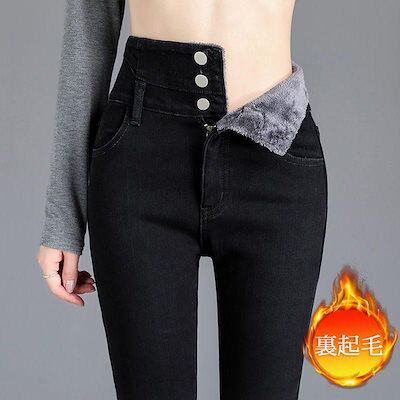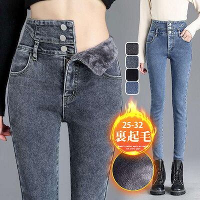 新品 大人気 デニムパンツ レディース ジーンズ 裏起毛 裏ボア ハイウェスト 暖かい 秋冬 ストレート Gパン ボトムス 美脚 脚長 保温 防風 おしゃれ