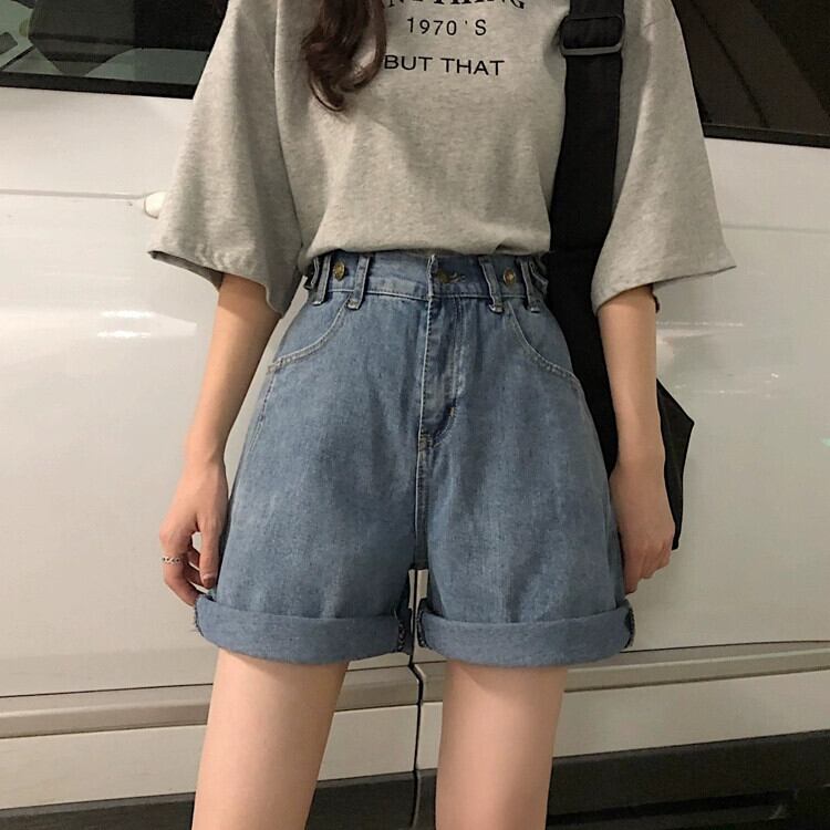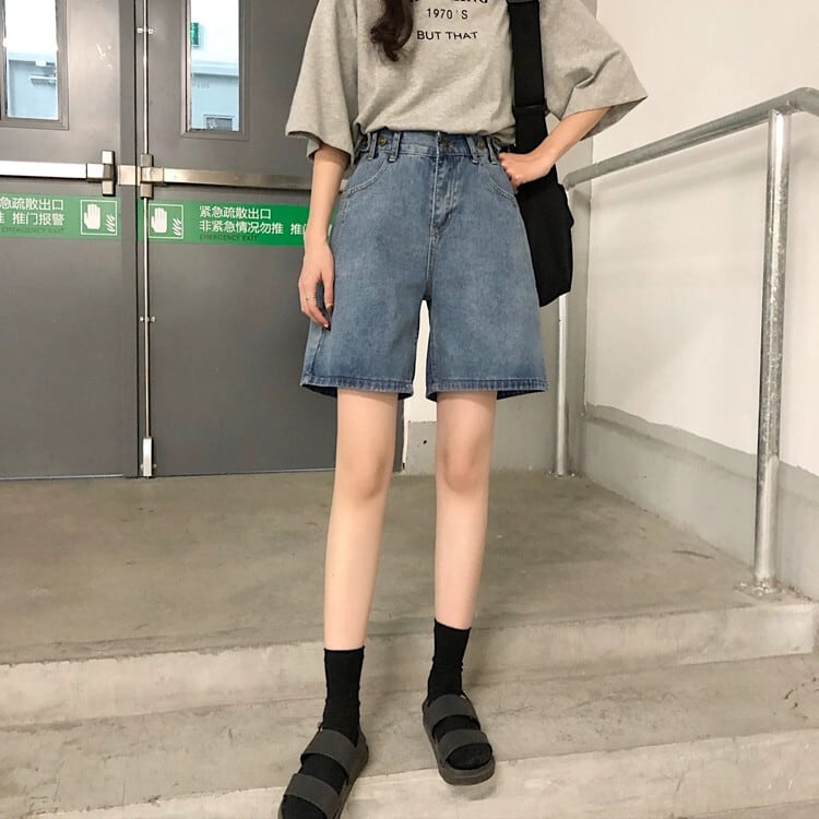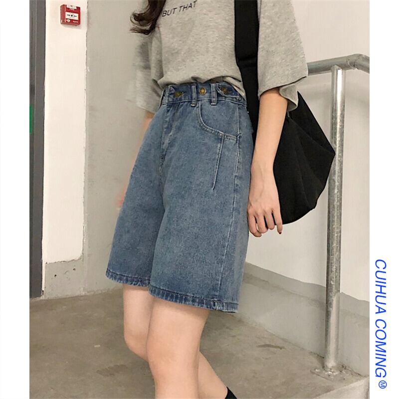 小さいデニムショートパンツレディース、夏ハイウエスト、スリム、ルーズ、ストレート、Aライン、ワイドレッグミドルパンツ、イントレンド サマー 夏物 ショーツ ブルマー takoya20181217a8858671759