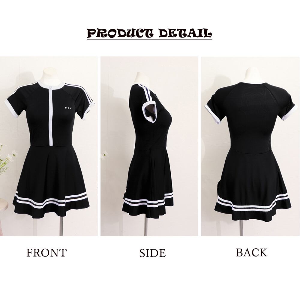 【 ライン入り ワンピース水着 半袖 着やせ 水着 レディース おしゃれ ビーチ ビキニ リゾート プール 体型カバー スリム 可愛い インスタ映え セパレート 露出控えめ 盛れるハイウエスト 韓国 日焼け対策 競泳 スイムウェア日焼け防止 スタイルアップ 着痩せ CCDK9653