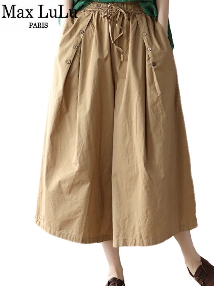 Max LuLu 2024 春パンツレディースワイドルーズヴィンテージ原宿ズボン Clic 固体弾性ハーレムパンツ エラスティック 伸縮 かわいい スプリング 春物 ソリッドカラー ビンテージ takoya0807d92793821940