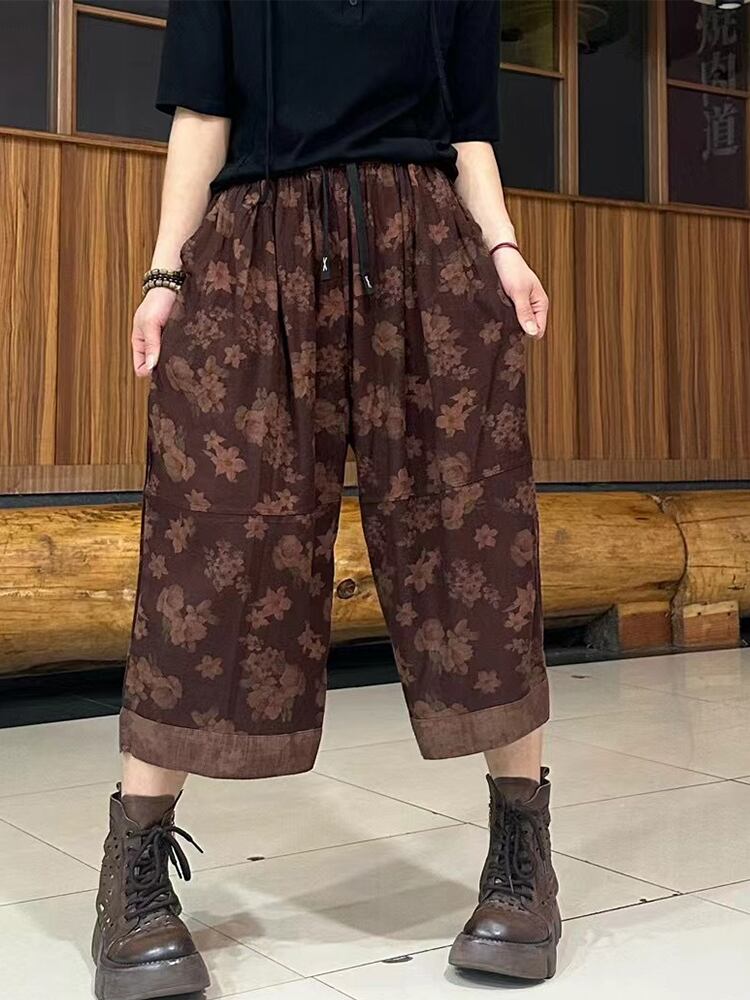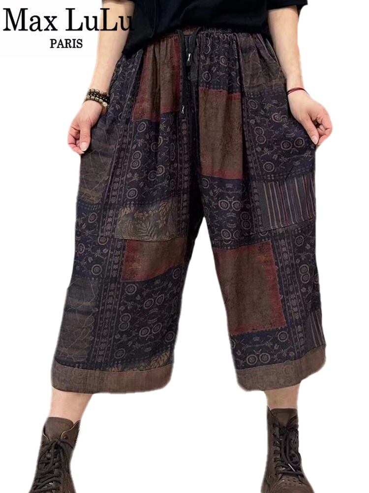 Max LuLu 夏リネンパンツ女性チェック柄花ヴィンテージルーズズボン Clic レジャー弾性プリントハーレムパンツ エラスティック 伸縮 サマー 夏物 花柄 ビンテージ takoya0807d19423043601