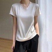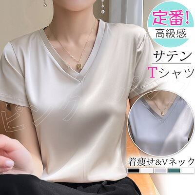 シアーシャツ 夏 サテン半袖 トップス定番 高級感 おしゃれ サテン半袖ブラウス 冷感 無地 tシャツ レディース 百掛け 通勤 インナー ブラウス韓国ファッションtシャツ 半袖