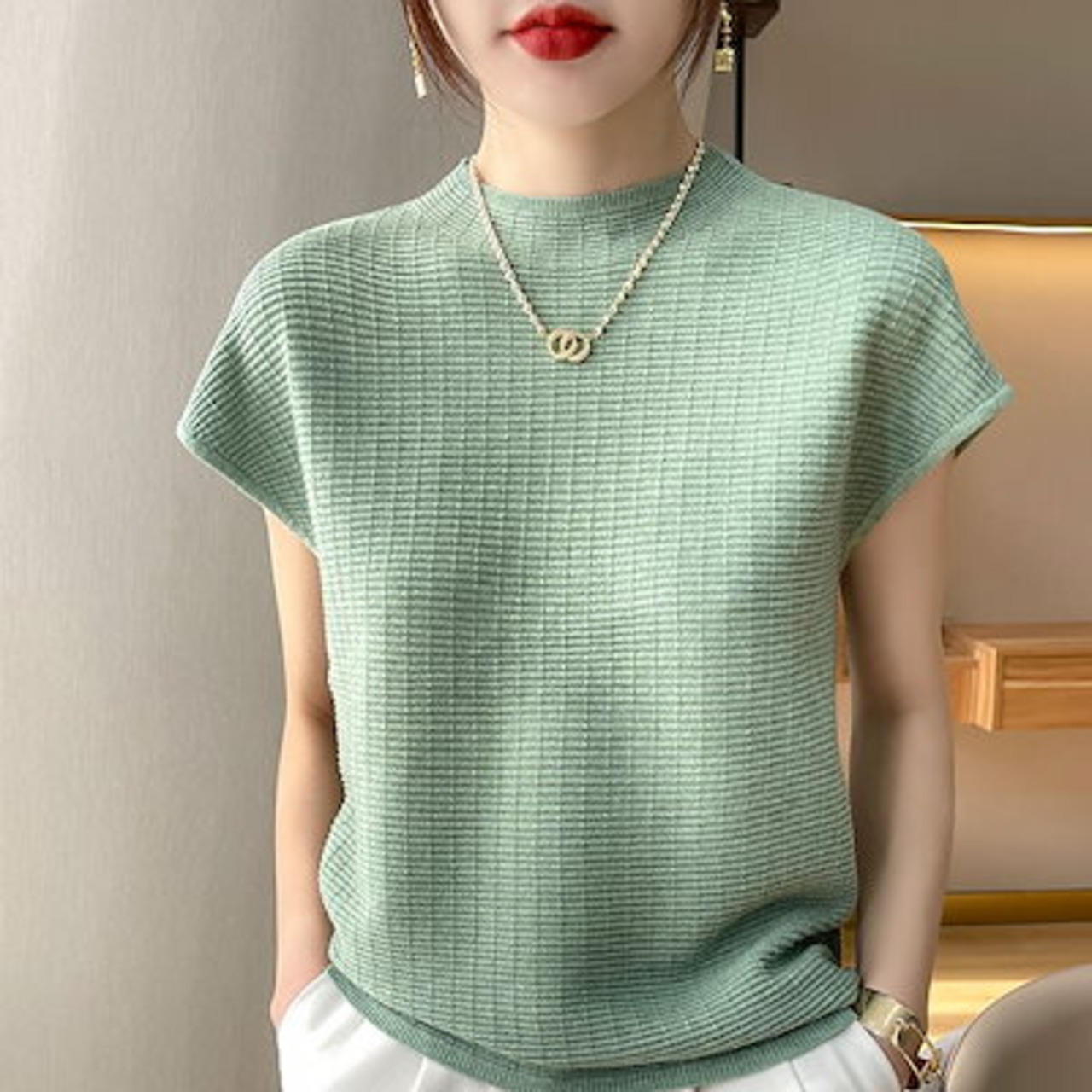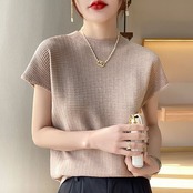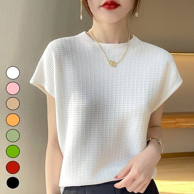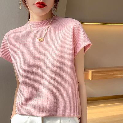 夏 ニット 半袖トップス ハイネック tシャツ レディース 無地百搭 大きいサイズ ティーシャツ セータ冷房対策 薄プルオーバー おしゃれヨガウェア