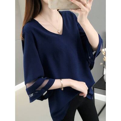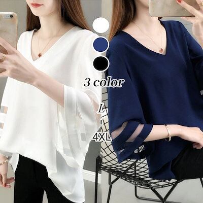 シフォンブラウス Tシャツ 春夏 フレア袖 シャツトップス ゆったり 半袖 シフォンブラウス 大きいサイズtシャツ 半袖 レディース母の日