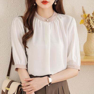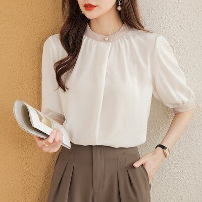 シアーシャツ 【上品】夏 半袖シャツ 気質百掛け シフォンブラウス ゆったり tシャツ 半袖 レディース 韓国ファッション 通勤 大きいサイズTシャツワイシャツ