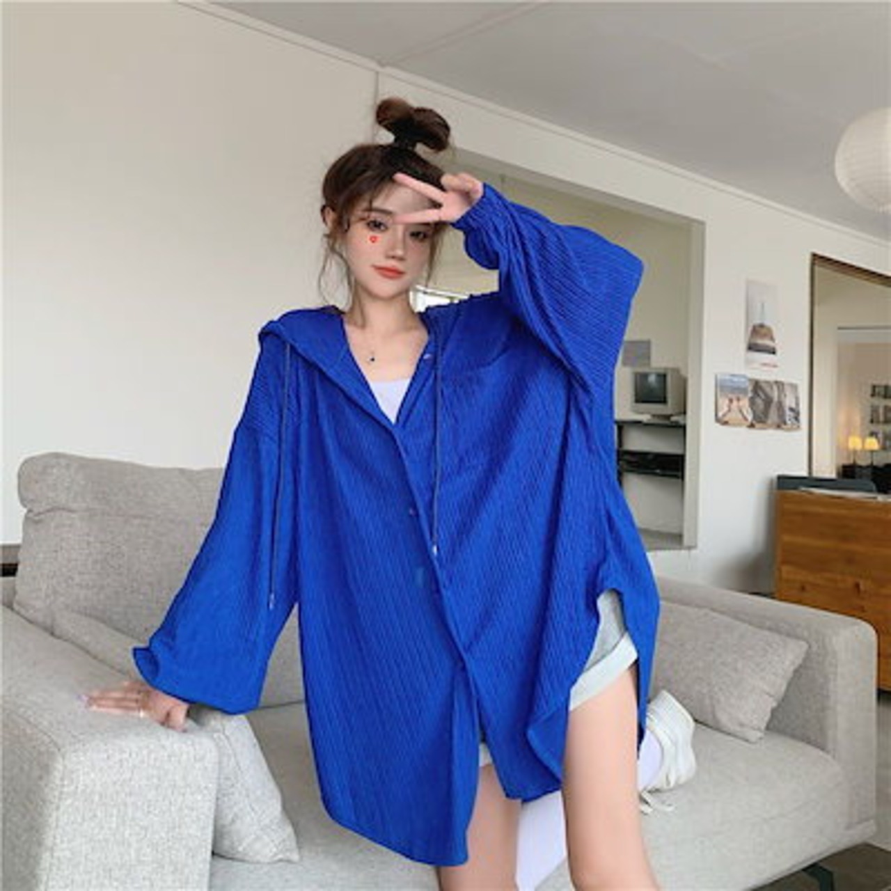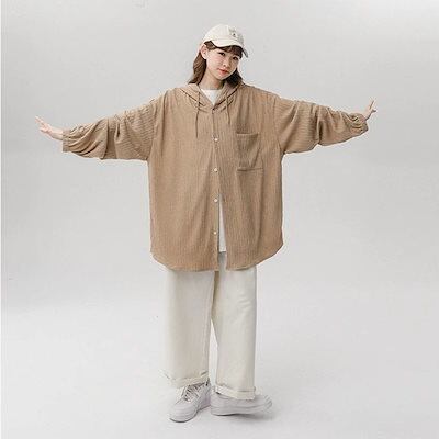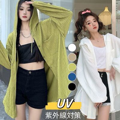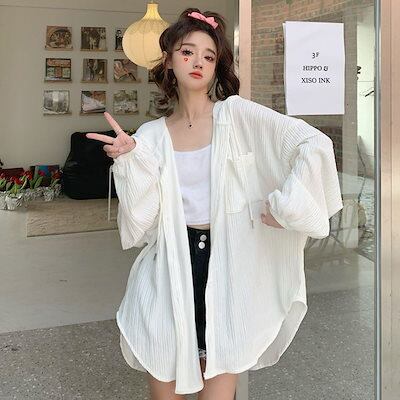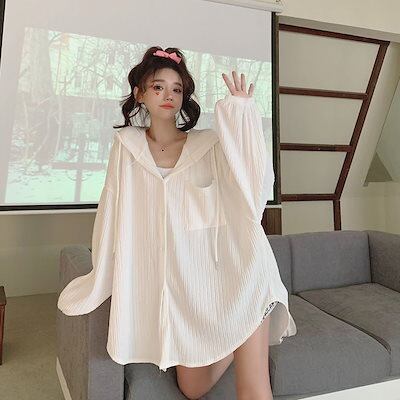 大きいサイズ uvカットパーカー ゆったり怠惰な風初秋 アウター 韓国ファッション 長袖トップス 百掛け 体型カバー ブラウス/シャツ レディース uv紫外線対策