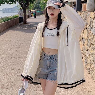 uvカットパーカー 韓国ファッション 日焼け対策 ブラウス レディース ゆったり 怠惰な風 百掛け パーカー uvアウター 紫外線対策 体型カバー シャツ Tシャツ カーディガン