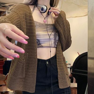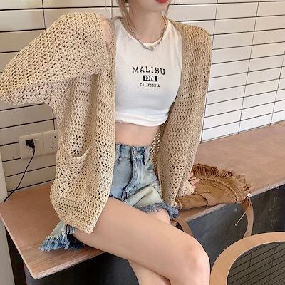 夏 uvカーディガン 透かし彫り ニット 夏 軽薄 日焼け防止 紫外線対策 長袖トップス冷感 体型カバー ニットカーディガン ゆったり 怠惰な風 韓国ファッション