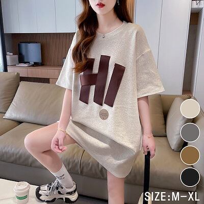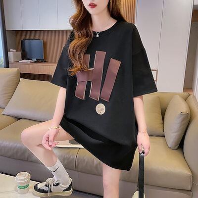 Tシャツカットソー 夏 ロングTシャツ 韓国ファッション 半袖 シャツ レディース セミロング 大きいサイズ 体型カバー? tシャツ ゆったり 怠惰な風 トップス/ブラウス