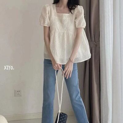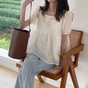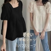シアーシャツ 夏 半袖シャツ レディース 可愛い パフスリーブ 韓国ファッション tシャツ 半袖 ゆったり百掛け ブラウス 大きいサイズ トップス