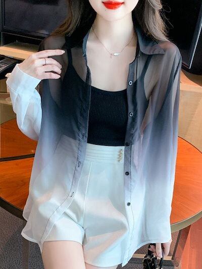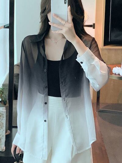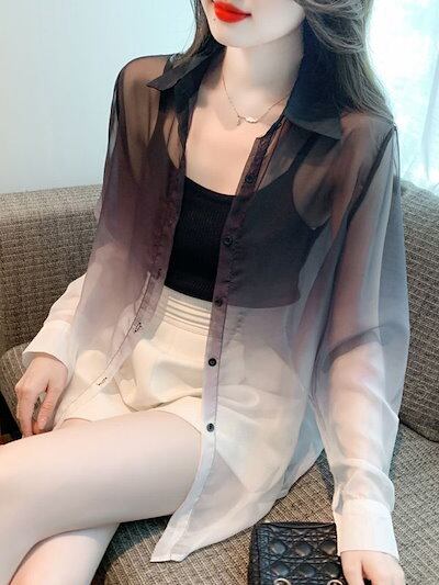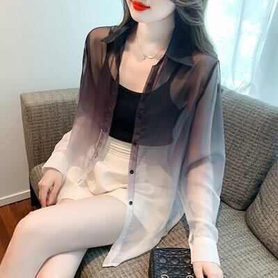 シアーシャツ 夏 uv カットカーディガン 冷感 グラーデション 紫外線対策 薄い ブラウス レディース 流行り 百掛け シャツ トップス 大きいサイズ 体型カバー