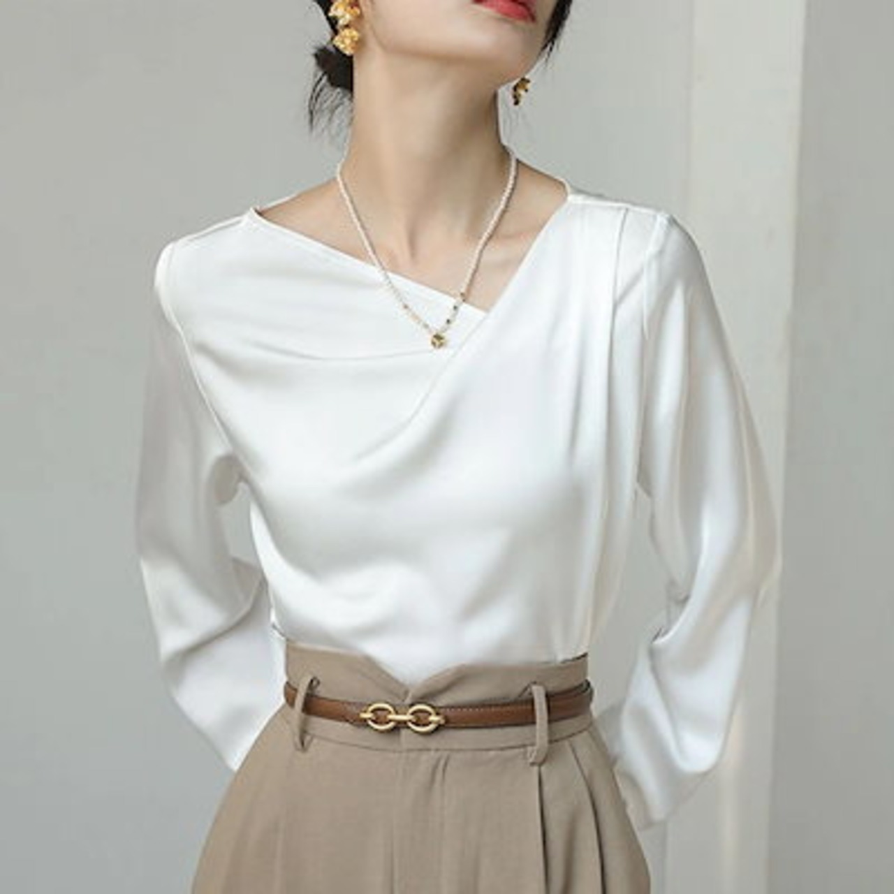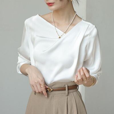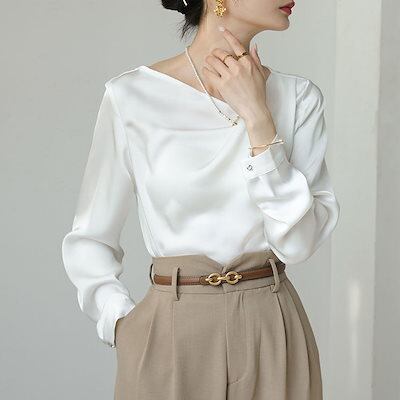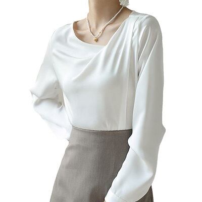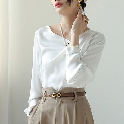 シアーシャツ 高級感 ブラウス レディース 韓国ファッション サテン シャツ イレギュラー設計 おしゃれ 長袖トップス 百掛け 通勤 インナー シンプル Tシャツ