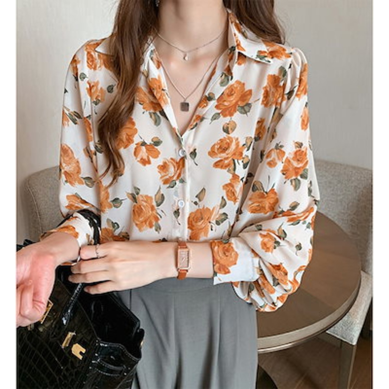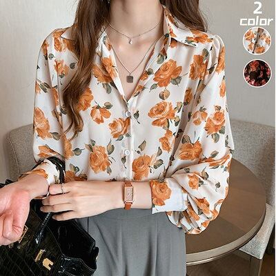 シフォンブラウス 春 流行り 花柄ブラウス レディース レトロ 百掛け 長袖トップス ゆったり 薄 シャツ ブラウス 通勤インナー 韓国ファッション 長袖 Tシャツ 大きいサイズ UVカット