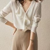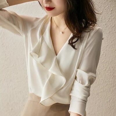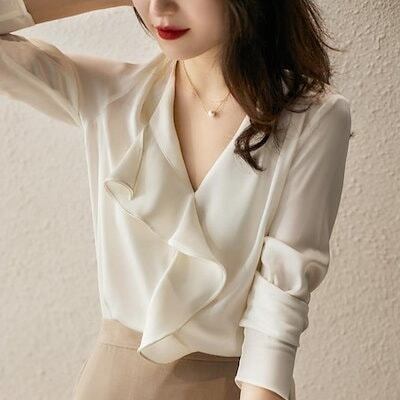 シアーシャツ 秋Tシャツ 長袖ブラウス シアーシャツシャツ 気質通勤シフォンレディース韓国ファッション百掛け 長袖トップス