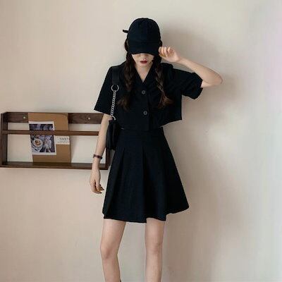 セットアップおしゃれヨガウェア 夏 気質 セット スーツセット ハイウエスト プリーツスカート キャンパス風 二点セット 韓国ファッション